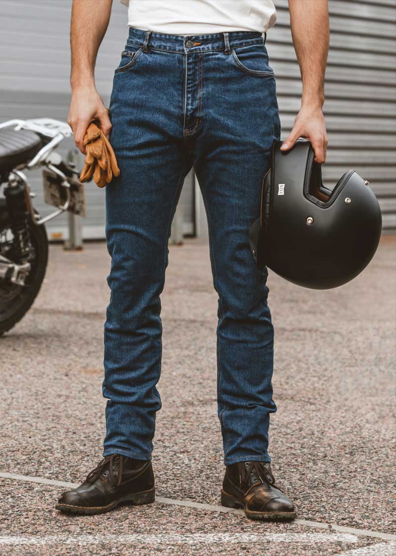 The SK11/B Jean is a narrow-leg five pocket western jean. It is made from stonewash blue stretch denim and is sewn in heavy gold ‘D-core’ thread. Inside are K-tech and air-flow linings, providing the highest level of abrasion protection and comfort.